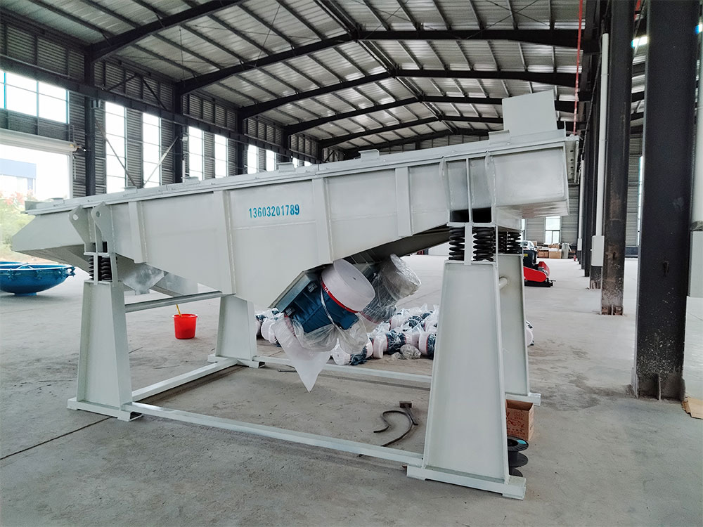 產(chǎn)品描述: 用于煤炭、水電、礦山、建材、化工、塑料、磨料、醫(yī)藥、糧食、炭素、化肥等行的設備 直線篩(直線振動篩)利用振動電機激振作為振動源,使物料在篩網(wǎng)上被拋起,同時向前作直線運動,物料從給料機均勻地進入篩分機的進料口,通過多層篩網(wǎng)產(chǎn)生數(shù)種規(guī)格的篩上物、篩下物、分別從各自的出口排出。具有耗能低、產(chǎn)量高、結構簡單、易維修、全封閉結構,無粉塵溢散,自動排料,更適合于流水線作業(yè)?! 」ぷ髟怼 SG系列振動篩工作時,兩電機同步反向旋轉(zhuǎn)使激振器產(chǎn)生反向激振力,迫使篩體帶動篩網(wǎng)做縱向運動,使其上的物料受激振力而周期性向前拋出一個射程,從而完成物料篩分作業(yè). 直線振動篩是雙振動電機驅(qū)動。當兩臺振動電機做同步、反缶旋轉(zhuǎn)時,其偏心塊所產(chǎn)生的激振力在平行于電機軸線的方向相互抵消,在垂直于電機軸的方向疊為一合力,因此篩機的運動軌跡為一直線。兩電機軸相對篩面有一傾角,在激振力和物料自重力的合力作用下,物料在篩面上被拋起跳躍式向前作直線運動,從而達到對物料進行篩選和分級的目的。適用于粒度在0.074-5mm、含水量小于70%、無粘性的各種干式粉狀物料的篩分。給料粒度不大于10mm?! ZSF直線振動篩主要特點及適于行業(yè): 篩分精度高、處理量大、結構簡單、耗能少、噪音低、篩網(wǎng)使用壽命長、密封性好、極少粉塵溢散、維修方便、可用于流水線生產(chǎn)中的自動化作業(yè)?! V泛應用于化工、食品、塑料、醫(yī)藥、冶金、玻璃、建材、糧食、化肥、磨料、陶瓷等行業(yè)中干式粉狀或顆粒狀物料的篩分。 基本特點 穩(wěn)定可靠、消耗少、噪音低、壽命長、振型穩(wěn)、篩分效率高等?! ZSF直線振動篩主要特點: 1、密封性好、極少粉塵溢散。 2、耗能少、噪音低、篩網(wǎng)使用壽命長?! ?、篩分精度高、處理量大、結構簡單?! ?、全封閉結構、自動排料、更適合于流水線作業(yè)?! ?、篩體各部分均采用扎制鋼板及型材焊接而成(部分組體間為螺栓連接)整體剛度好,牢固可靠。